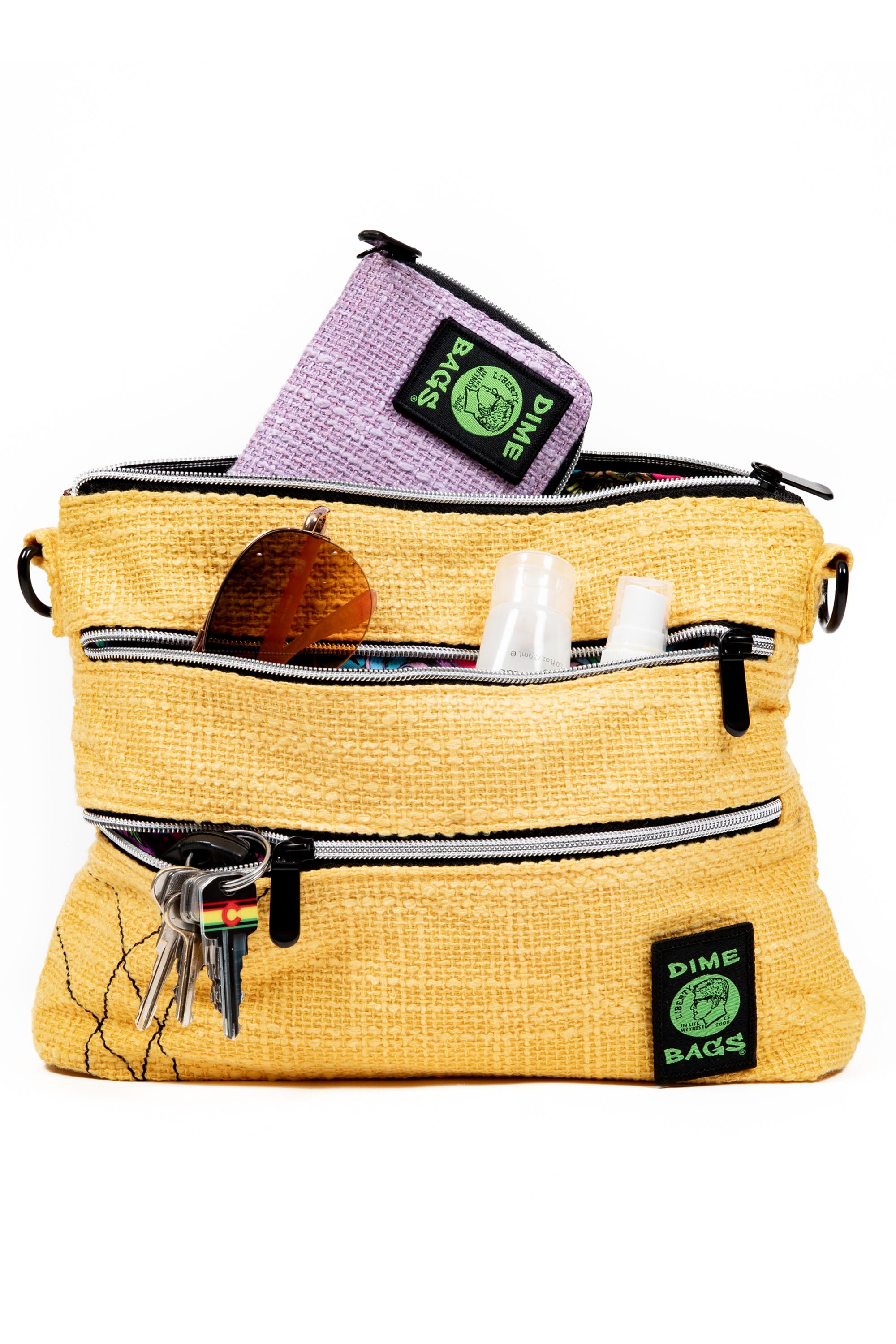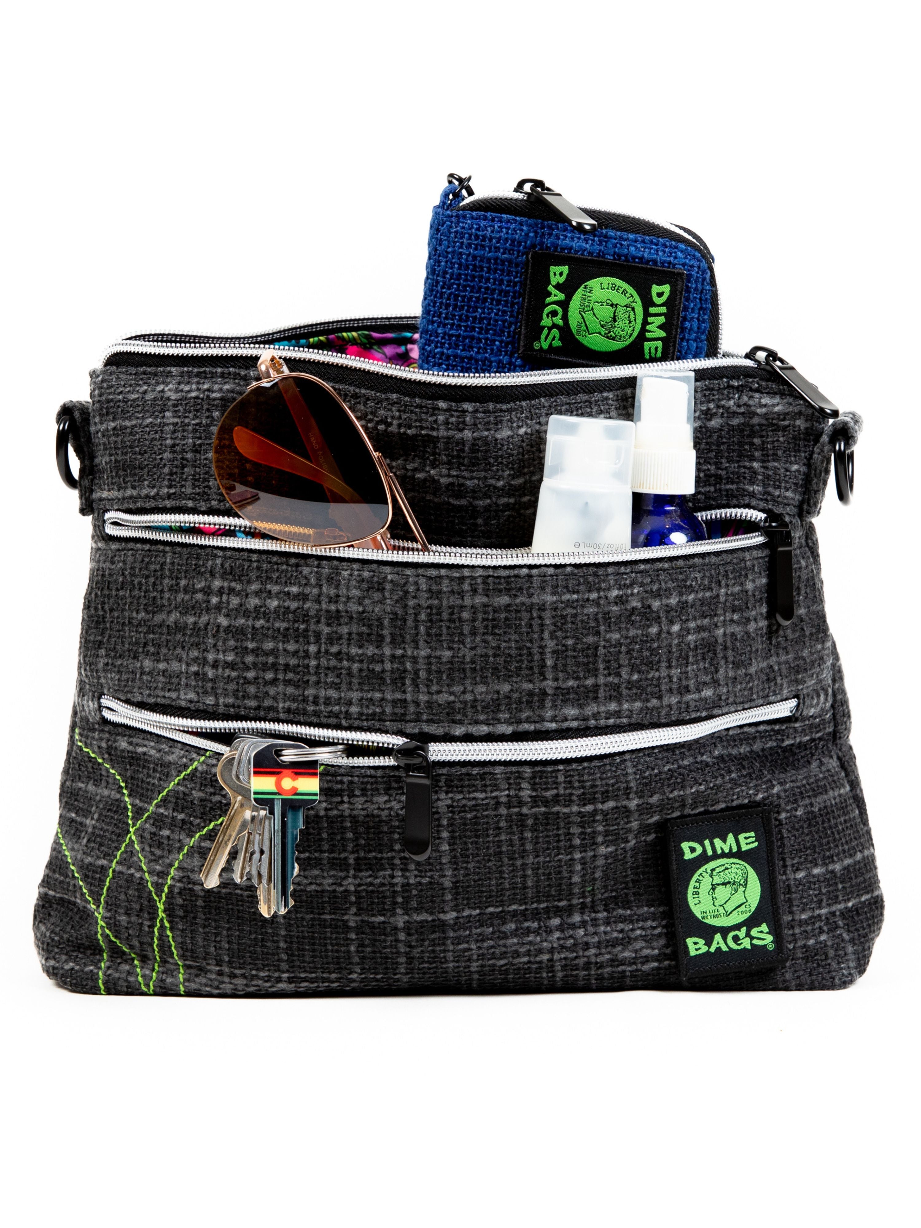 Seven total compartments including dual exterior zippers, two internal organizer pockets, and a secret stash spot. Small enough to stay light, big enough to carry your daily must-haves with room to spare for spontaneous adventures.
