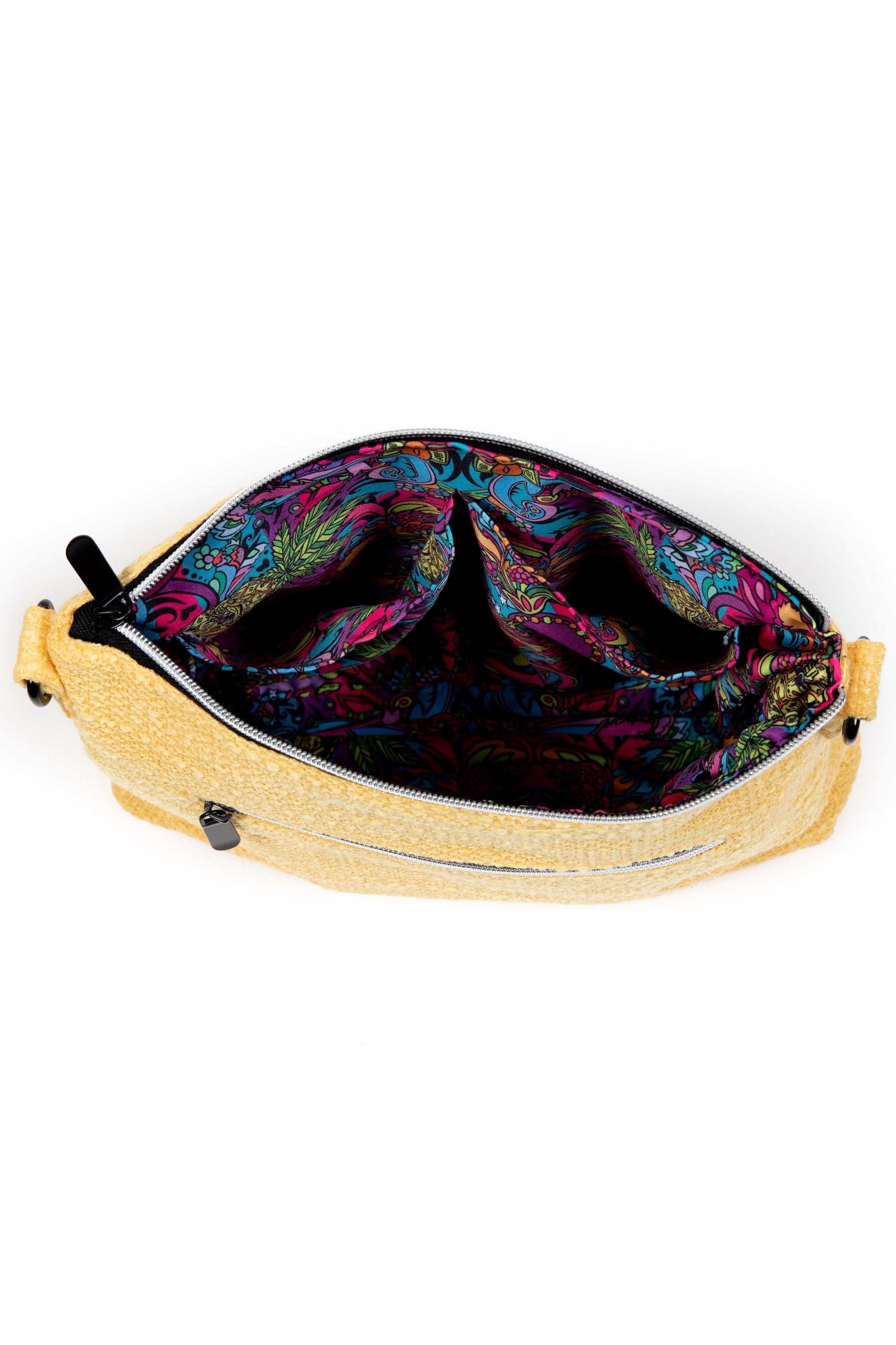 Hempster shell, Satin interior lining with Ellie Paisley artwork, Heavy-duty zipper hardware