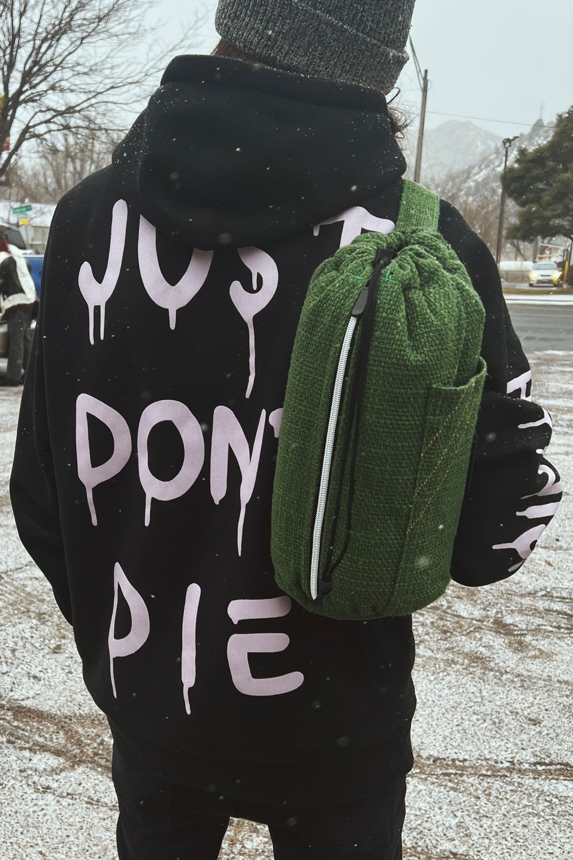 Hempster exterior, 100% cotton padded interior, Reinforced stitching, Durable drawstring closure