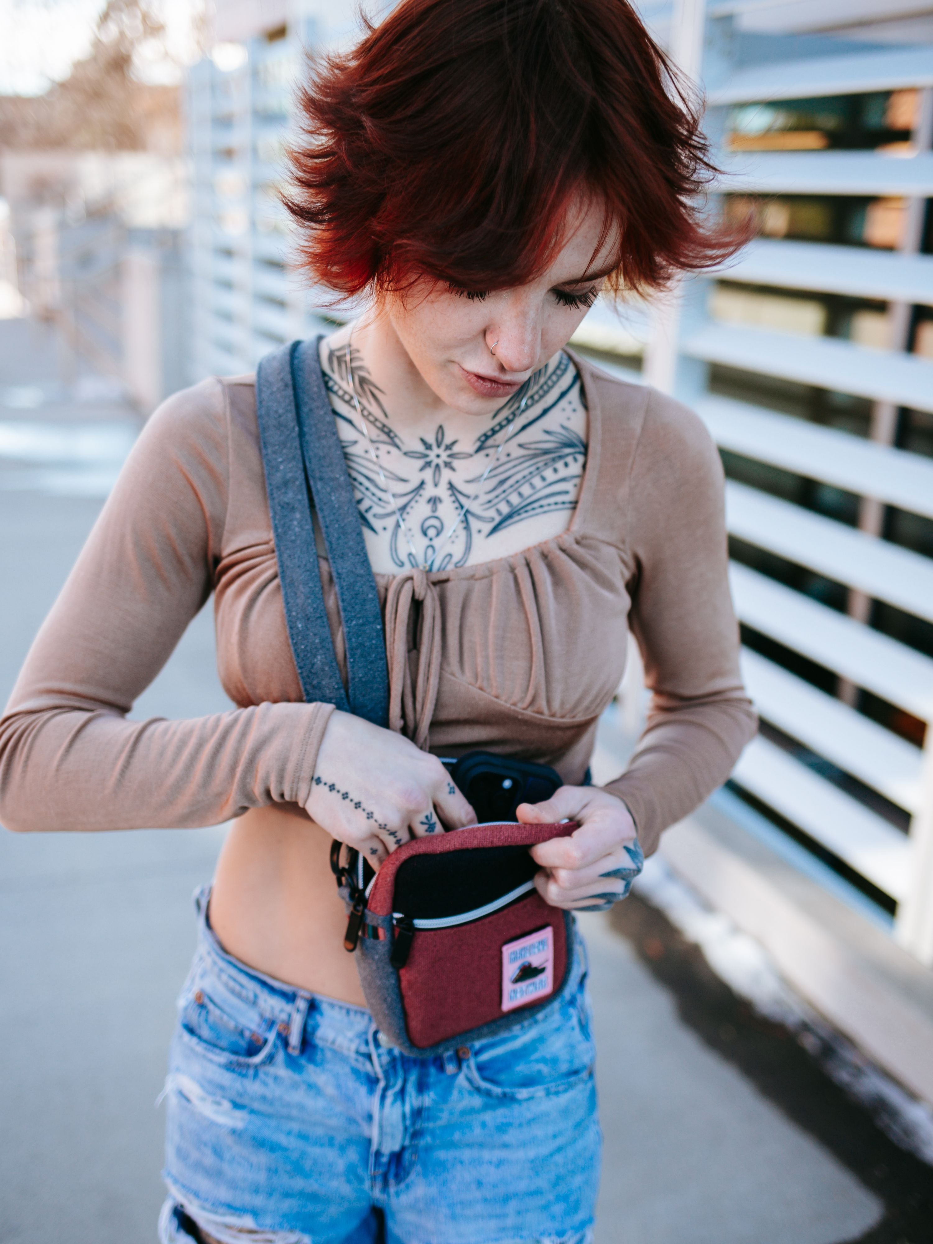 Ignite your style with The Muse. The same Button design you know and love, now crafted from 100% Nepali hemp. With its sleek look and natural tones, this crossbody blends fashion, sustainability, and everyday function. From daily essentials to small smoking devices, The Muse keeps you hands-free and on the move.